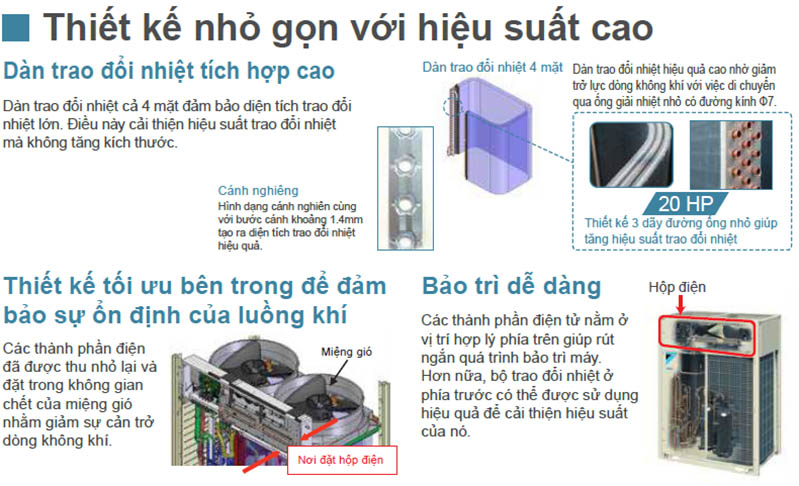 Dàn nóng thiết kế dạng module và chủng loại dàn lạnh phong phú đảm bảo hệ thống được thiết kế vừa khít với không gian cần lắp đặt.
