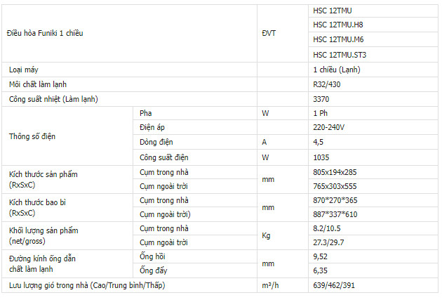 TÍNH NĂNG CỦA MÁY LẠNH FUNIKI HIC 12TMU