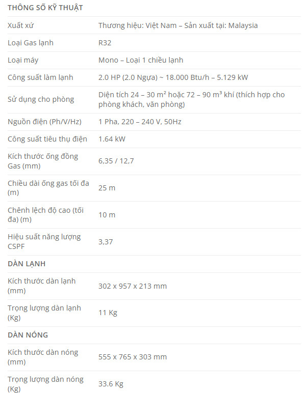 - Sử dụng : Sử dụng cho phòng có thể tích: 60-80m³ khí