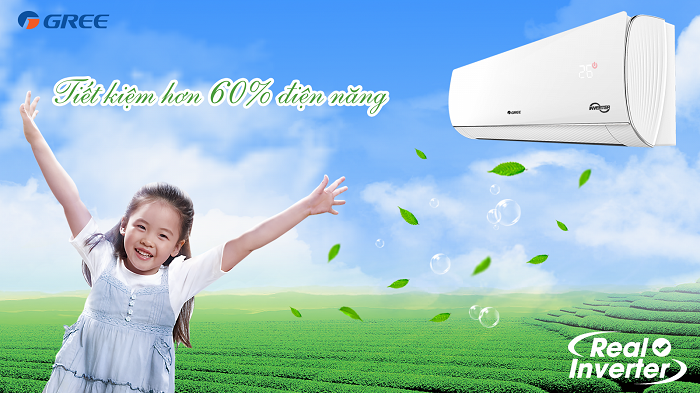 Công nghệ Real Inverter của máy lạnh Gree giúp máy nén có thể hoạt động được ở tần số cực thấp mang lại khả năng tiết kiệm điện năng hiệu quả đến 60% so với điều hòa thông thường. Bên cạnh đó, điều hòa còn hoạt động bền bỉ và kiểm soát nhiệt độ một cách chính xác nhất.