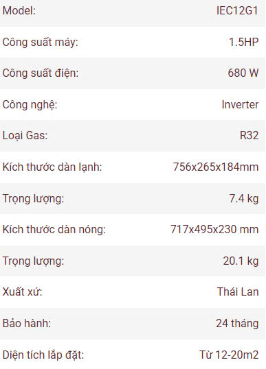 - Bảo hành : 02 năm dàn lạnh + 10 năm máy nén