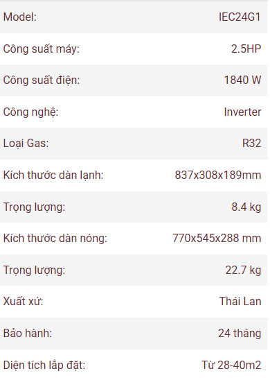 - Bảo hành : 02 năm dàn lạnh + 10 năm máy nén
