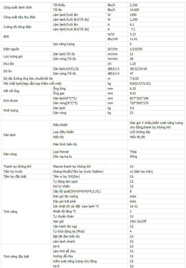 - Bảo hành : 2 năm dàn lạnh, 10 năm máy nén