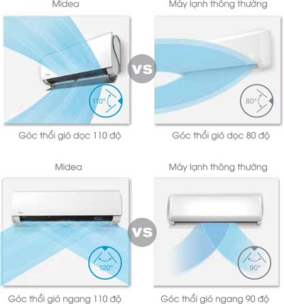 Góc thổi gió rộng, thổi gió 3 chiều.
