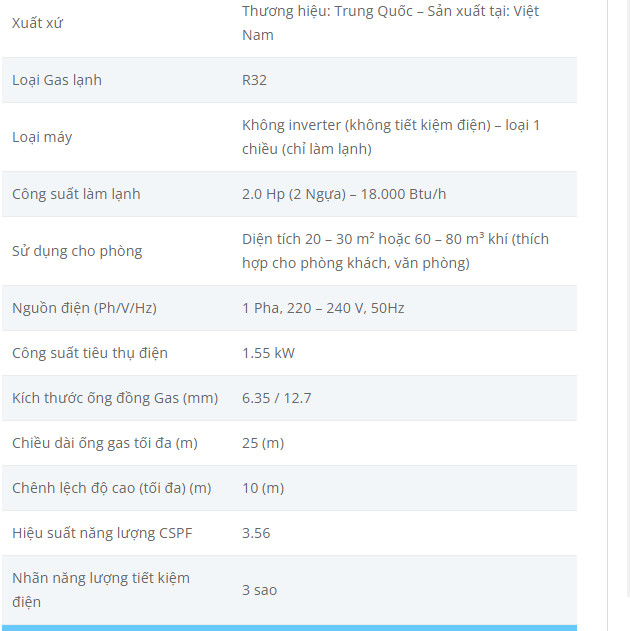 - Bảo hành : 02 năm dàn lạnh + 05 năm máy nén