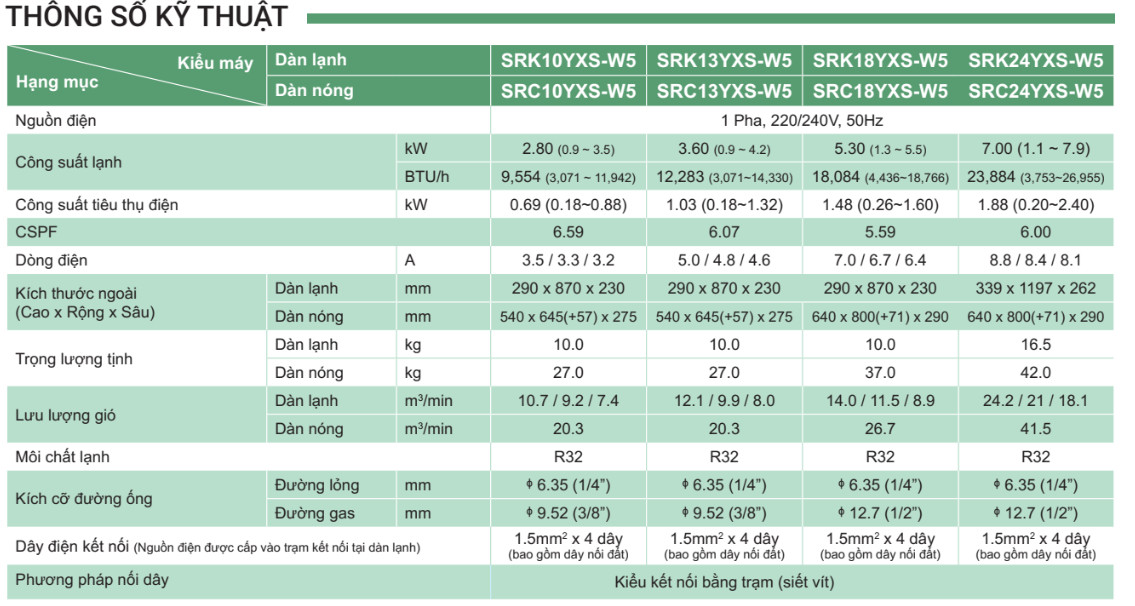 - Bảo hành : 02 năm dàn lạnh, 05 năm máy nén