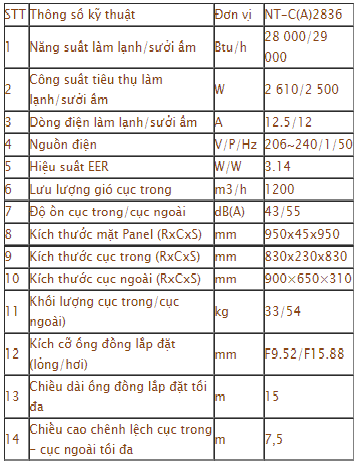 Máy lạnh âm trần NAGAKAWA NT- C2836