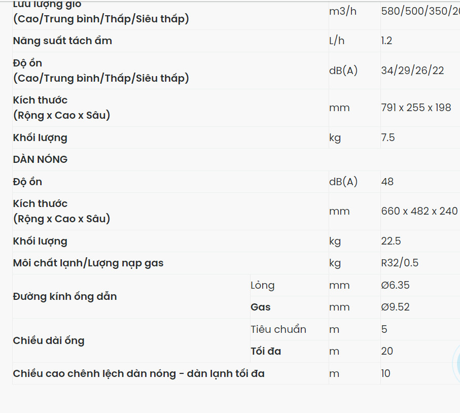 - Bảo hành : 02 năm dàn lạnh, 02 năm máy nén