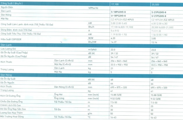 Máy lạnh âm trần Panasonic S-18PU2H5-8/U-18PS2H5-8