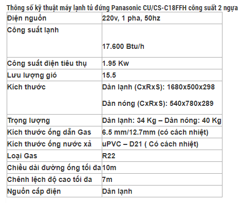 Máy lạnh tủ đứng Panasonic CU/CS- C18FFH