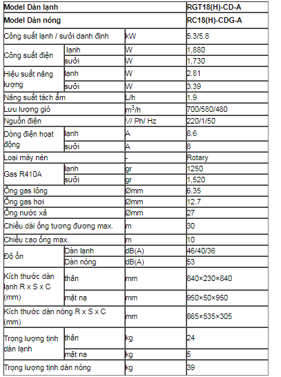 - Bảo hành : 02 năm dàn lạnh + 02 năm máy nén