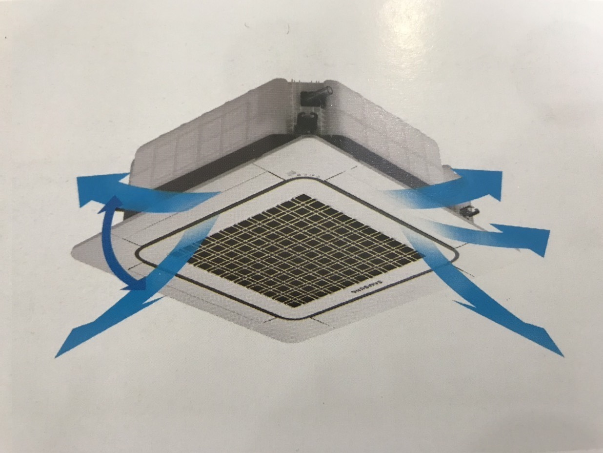 Máy lạnh âm trần 4 hướng thổi Samsung cho phép người sử dụng tùy chỉnh dòng gió đúng với sự thoải mái. Người dung có thể điều khiển độc lập bốn cánh đảo gió và cài đặt chúng ở cùng 1 góc thổi hoặc ở các góc khác nhau (32 – 65 độ) để tạo một môi trường, lành mạnh, lý tưởng).