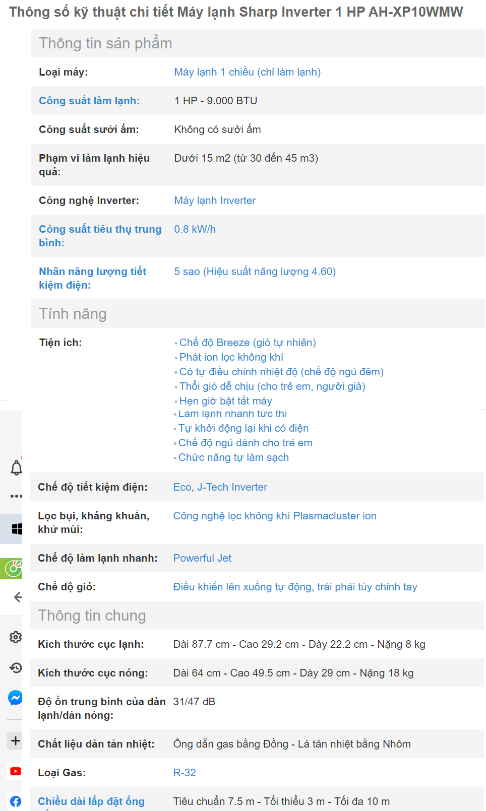 CÁC TÍNH NĂNG CỦA MÁY LẠNH SHARP AH-XP_YMW