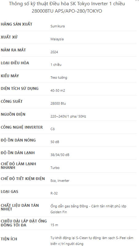 Máy lạnh Sumikura APS/APO-280TOKYO