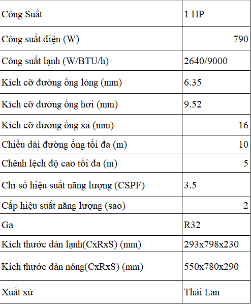 - Bảo hành : 2 năm dàn lạnh,2 năm máy nén
