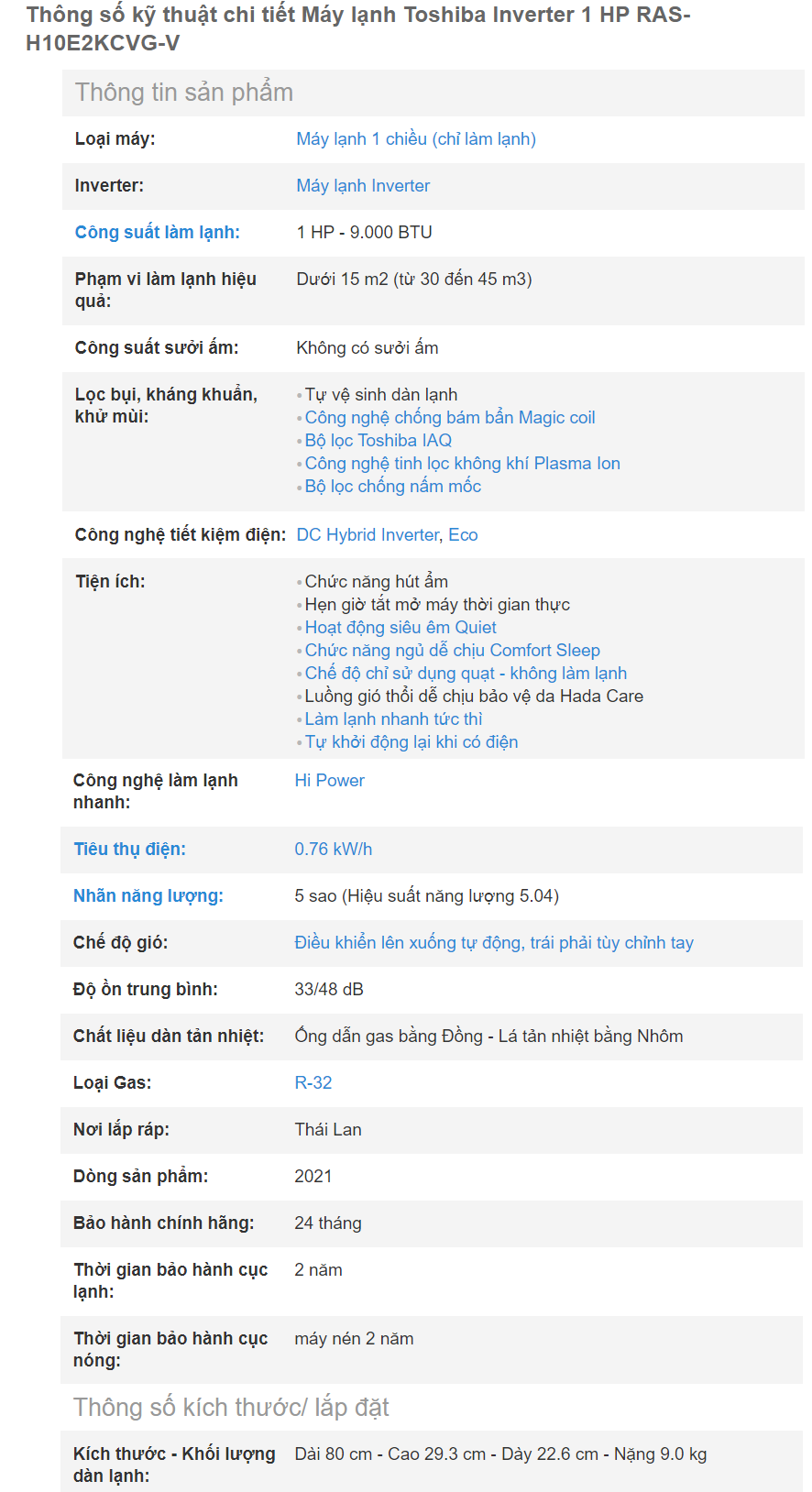 - Bảo hành : 02 năm dàn lạnh + 02 năm máy nén