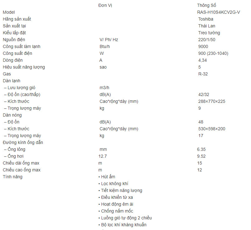 TÍNH NĂNG CỦA MÁY LẠNH TOSHIBA RAS-H10S4KCV2G-V